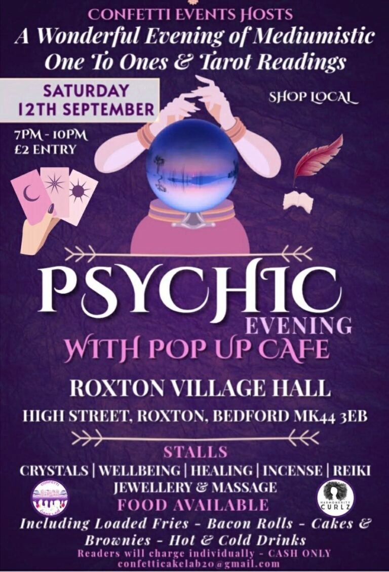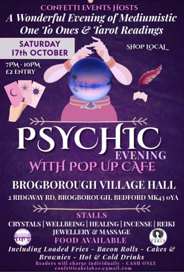 What to expect A wonderful evening of Mediumistic one to ones and Tarot readings plus Massage & healing available! Gorgeous stalls to browse selling crystals, jewellery, candles, skincare, resin & more! A lovely atmosphere, everyone welcome. Come as a group…